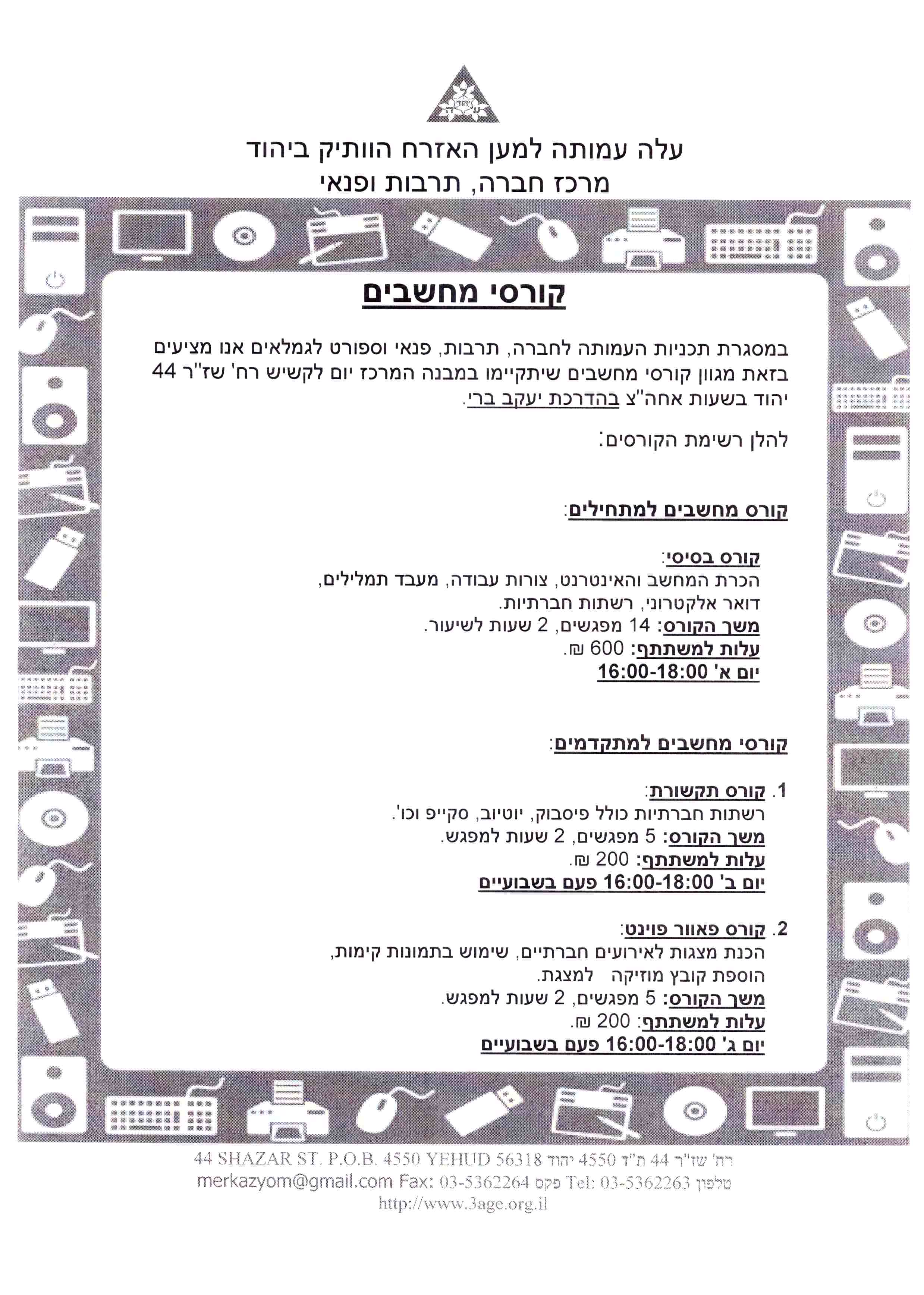 שעות פעילות מרכז היום בחגי תשרי תשע"ח